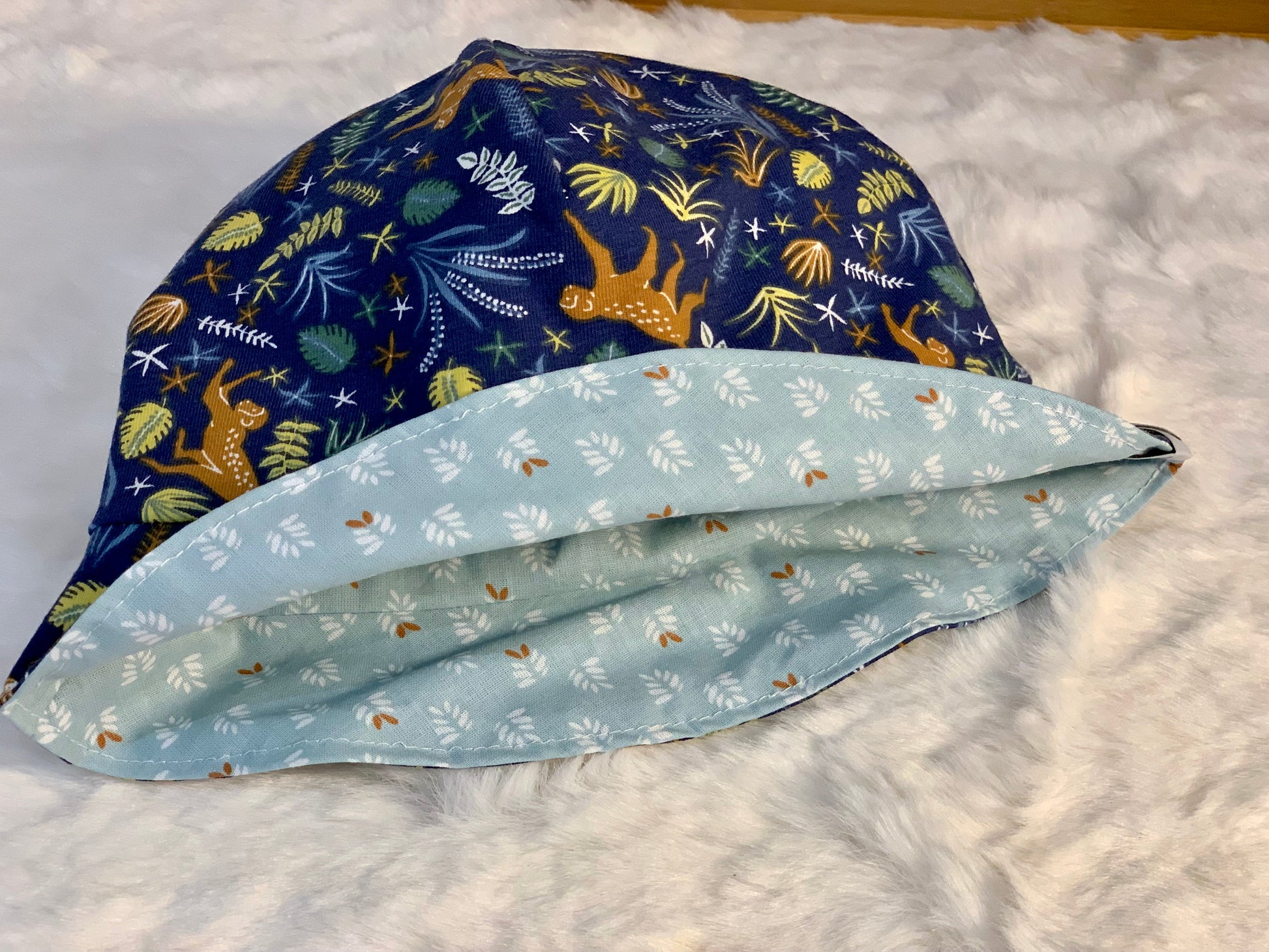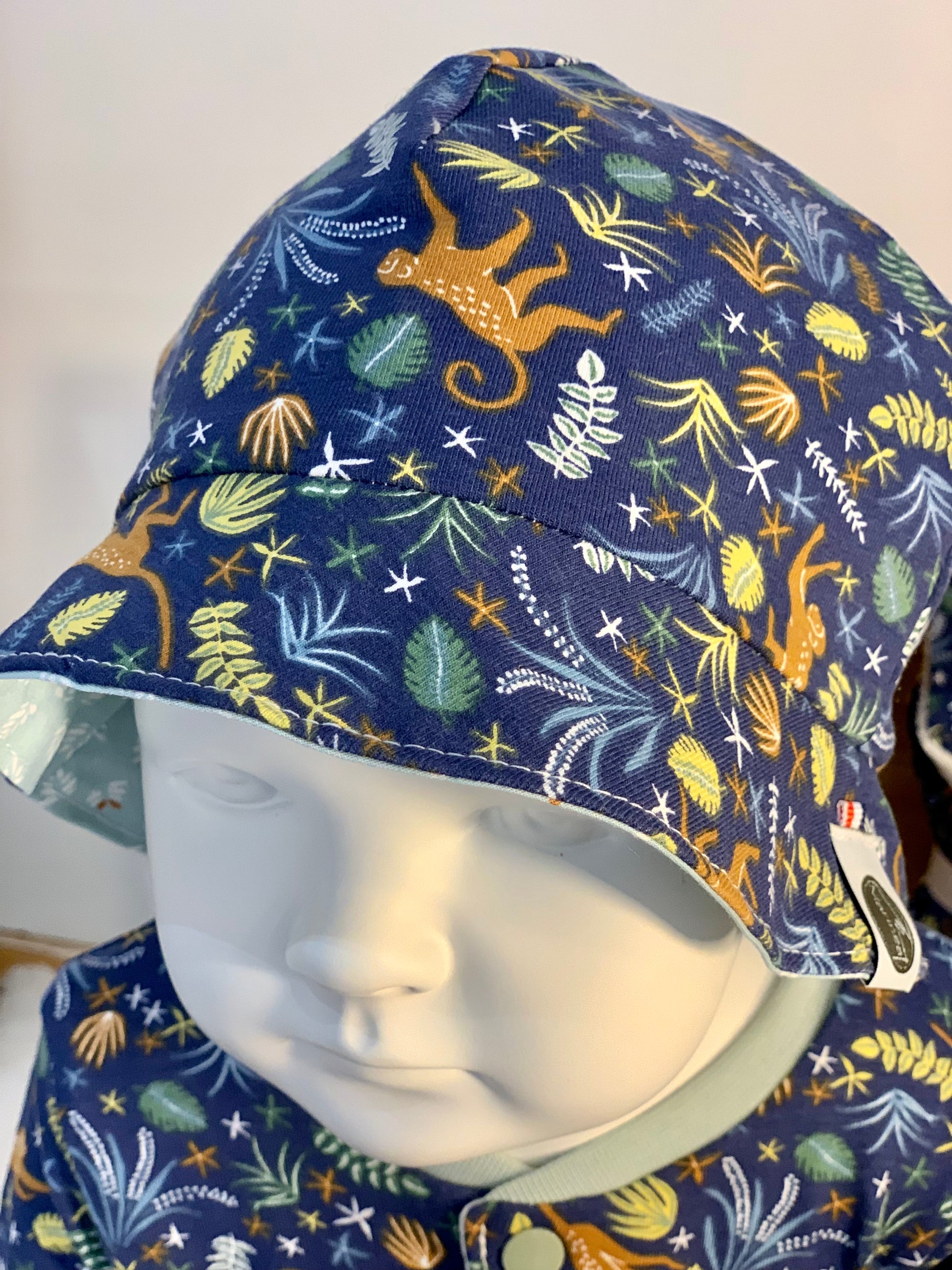 Cousu dans le jersey assorti aux vêtements et doublé de coton, ce chapeau protègera la jolie tête de bébé tout en beauté.