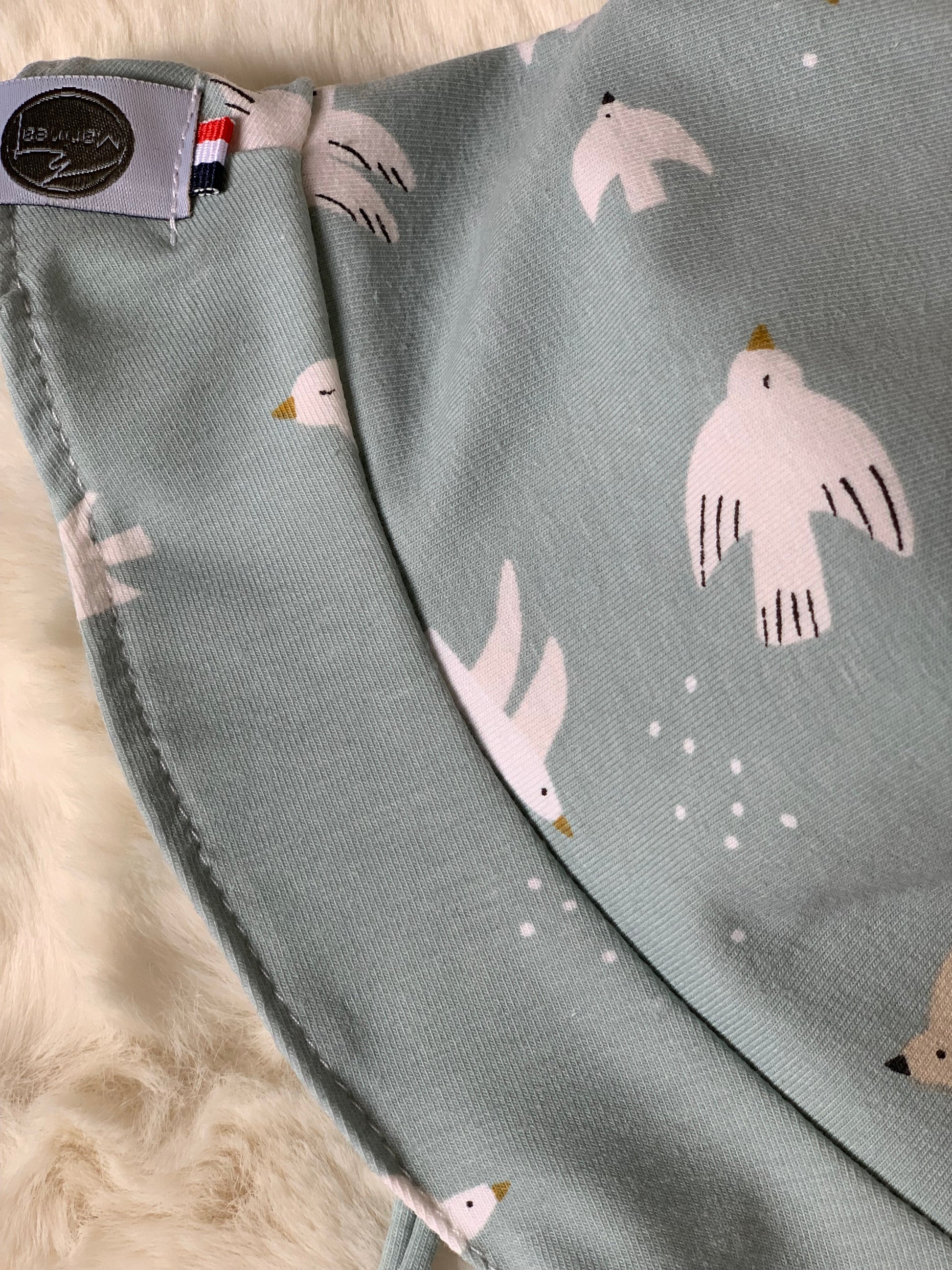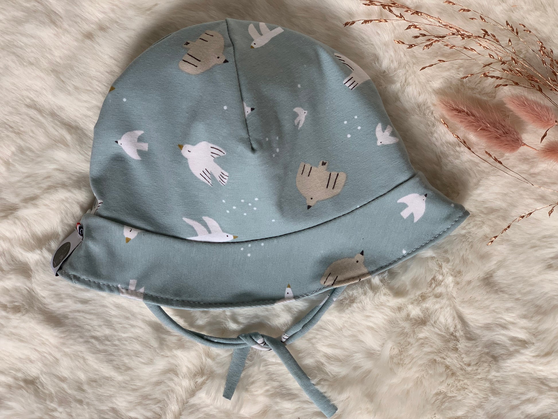 Cousu dans le jersey assorti aux vêtements et doublé de coton, ce chapeau protègera la jolie tête de bébé tout en beauté.