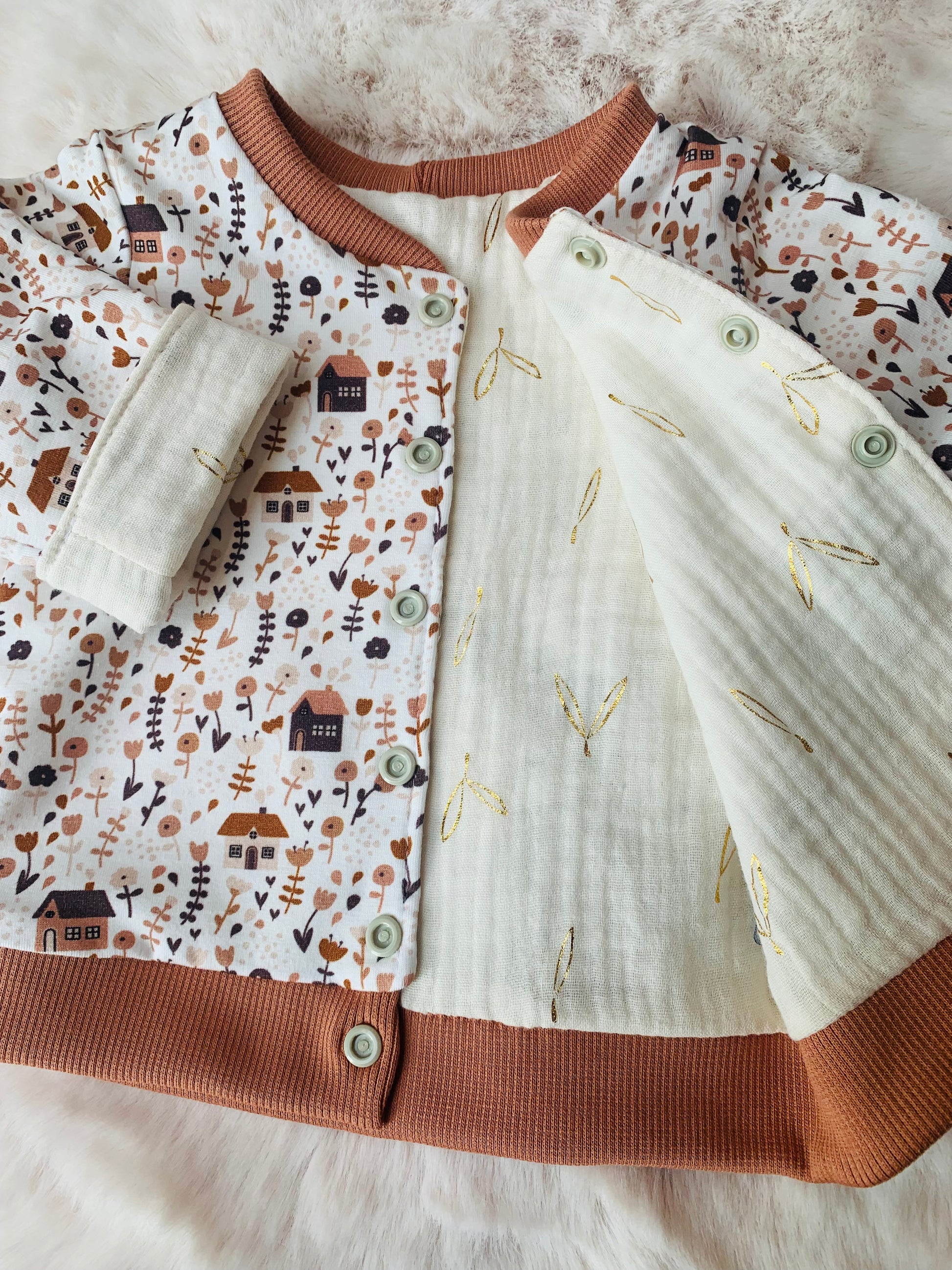 Cette veste se porte endroit ou envers selon vos envies. Elle est confectionnée dans un jersey de qualité, les finitions sont en bord côte assorti pour en faire un vêtement souple et agréable pour vos petits.