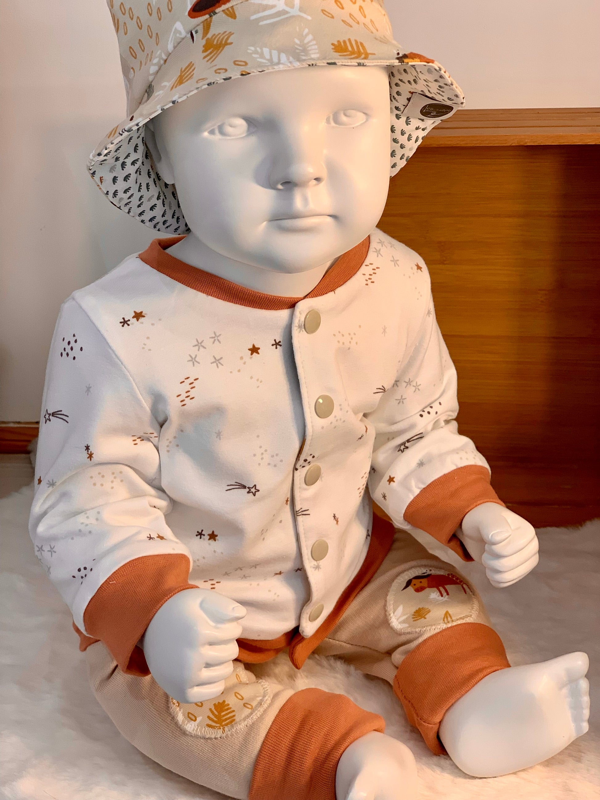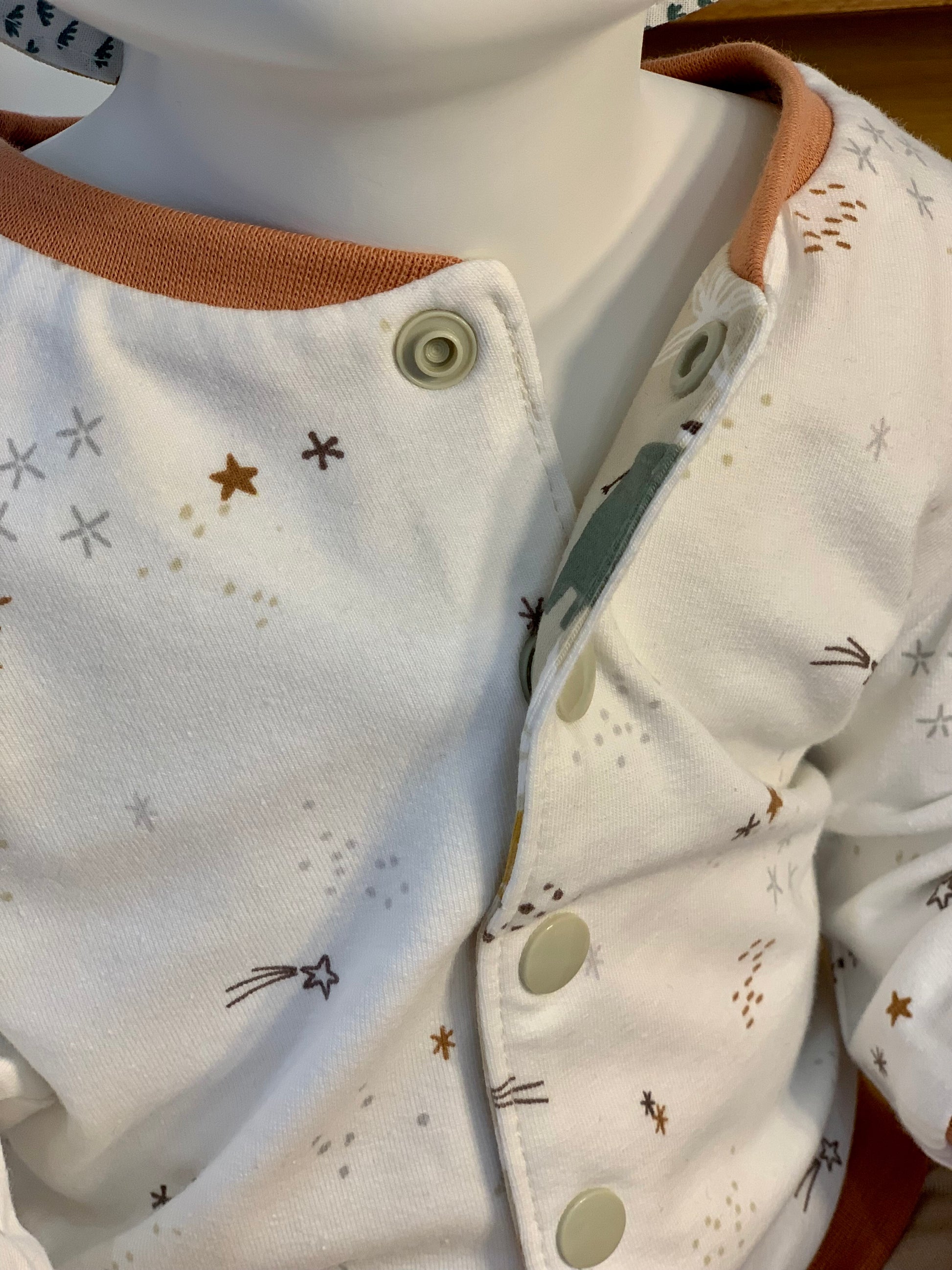 Conseil de lavage : Lavage en machine à 30 degrés, séchage à l'air libre, repassage doux si nécessaire (sans passer sur les pressions).